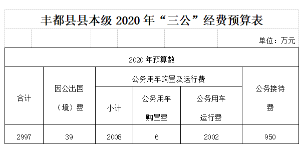 豐(feng) 都縣縣本級2020年三公經費信息公開