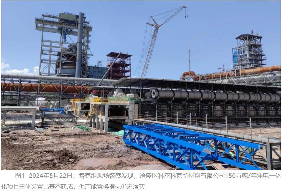 一是“兩(liang) 高”項目盲目上馬監管缺位。2021年10月,國家有關(guan) 部門印發《“十四五”全國清潔生產(chan) 推行方案》,要求焦化等6類行業(ye) 新建項目嚴(yan) 格實施產(chan) 能等量或減量置換。督察發現,重慶市有關(guan) 部門印發的《重慶市“十四五”清潔生產(chan) 推行工作方案》,將國家明確要求的6類行業(ye) 縮減為(wei) 4類,未對焦化、煉油項目提出要求。2023年3月,涪陵區科爾科克新材料有限公司150萬(wan) 噸/年焦電一體(ti) 化項目開工建設,截至督察進駐時項目主體(ti) 裝置已基本建成,但產(chan) 能置換指標仍未落實。