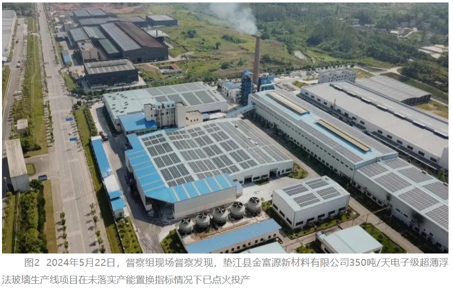 2017年12月,國家有關(guan) 部門印發《水泥玻璃行業(ye) 產(chan) 能置換實施辦法》明確,熔窯能力超過150噸/天的新建工業(ye) 用平板玻璃項目,製定產(chan) 能置換方案。2018年8月,墊江縣有關(guan) 部門為(wei) 規避產(chan) 能置換要求,將2017年11月備案的金富源新材料有限公司350噸/天電子級超薄浮法玻璃生產(chan) 線項目撤銷,重新備案為(wei) 150噸/天(厚度1.3毫米以下)。督察發現,該項目熔窯實際能力仍為(wei) 350噸/天(厚度1.7—6毫米),與(yu) 備案內(nei) 容嚴(yan) 重不符。2024年3月,國家有關(guan) 部門要求重慶市組織核實,但重慶市有關(guan) 部門以該公司虛假編製的項目可研、生產(chan) 報表等材料為(wei) 依據,未進行認真複核,複函認定項目熔窯能力為(wei) 150噸/天,導致違規產(chan) 能未得到及時查處。