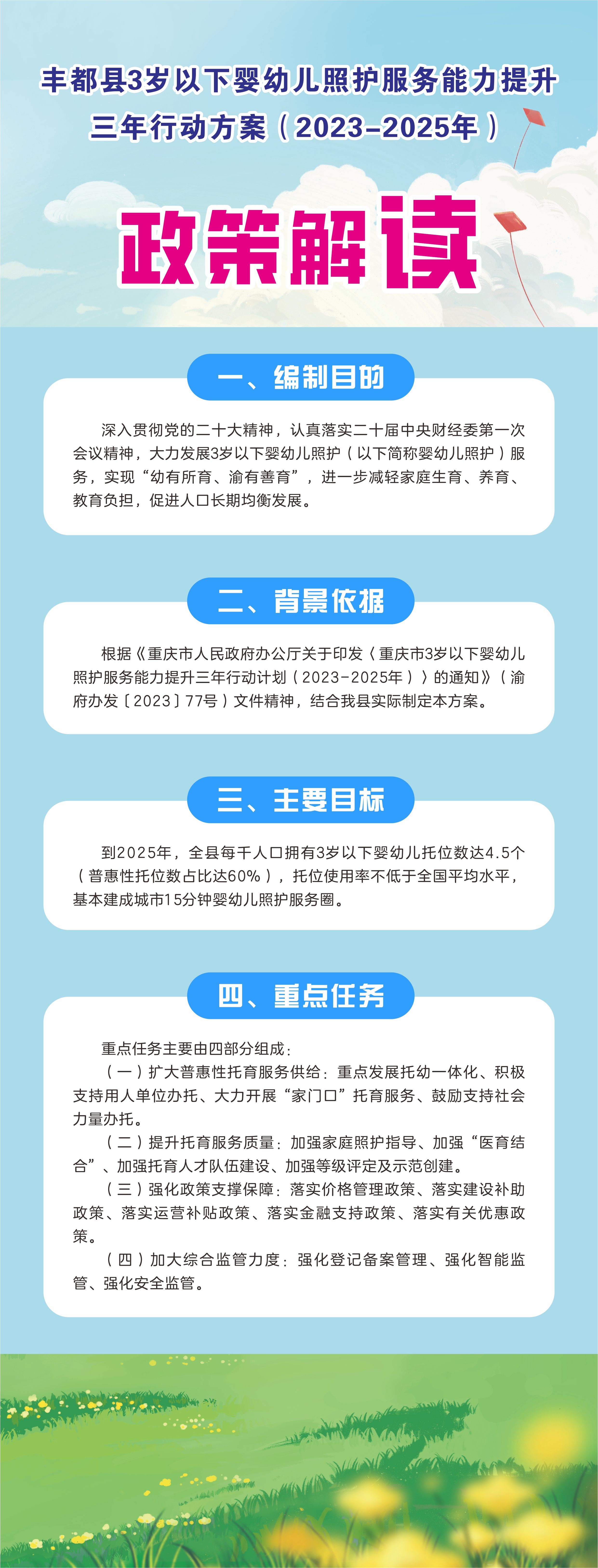 政策問答解讀《豐(feng) 都縣3歲以下嬰幼兒(er) 照護服務能力提升三年行動方案(2023-2025年)》的通知