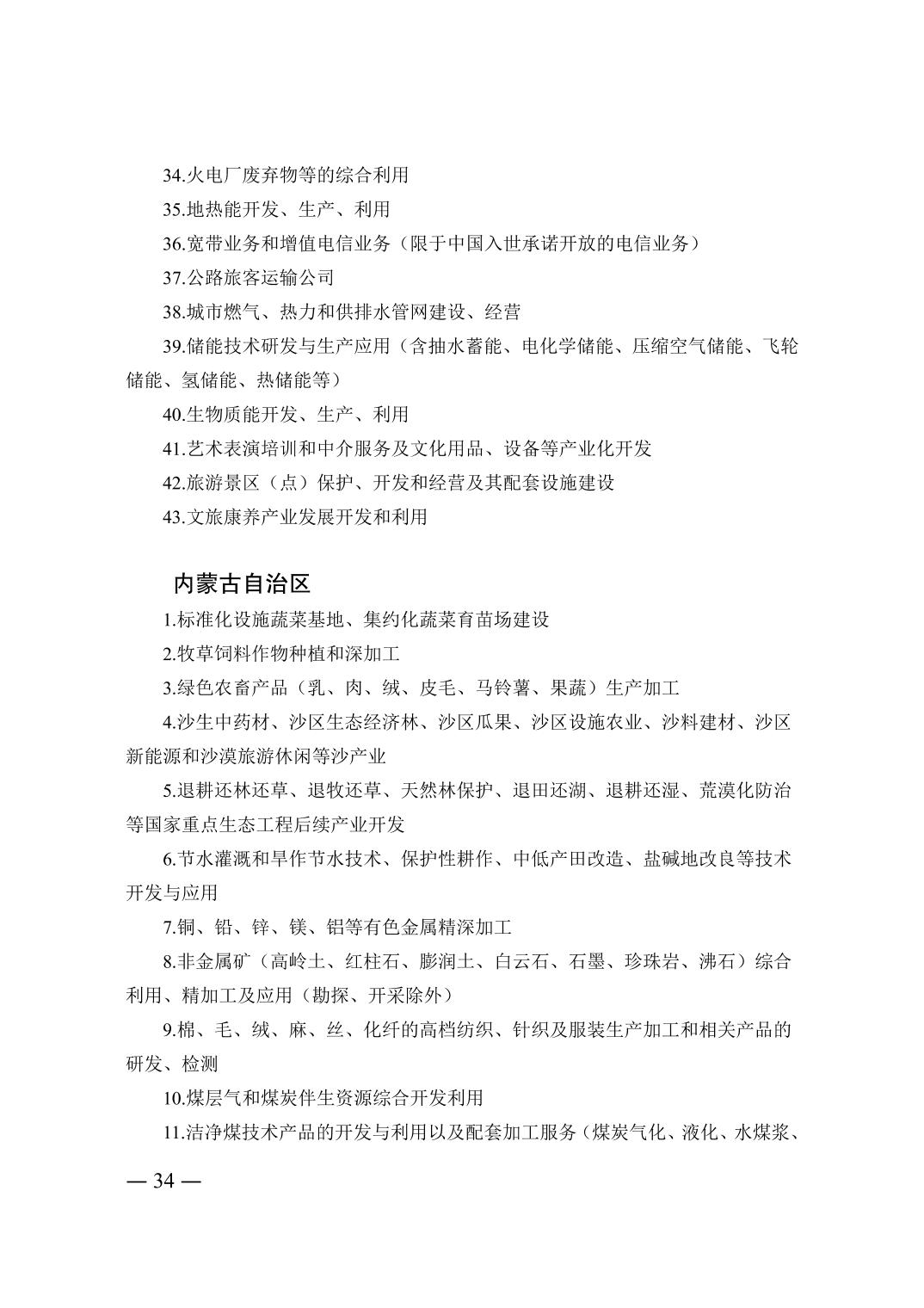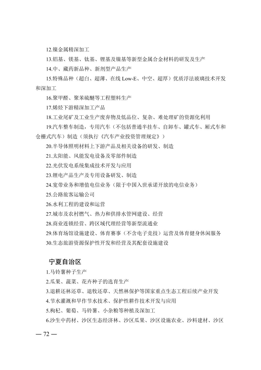 外商投資鼓勵類目錄