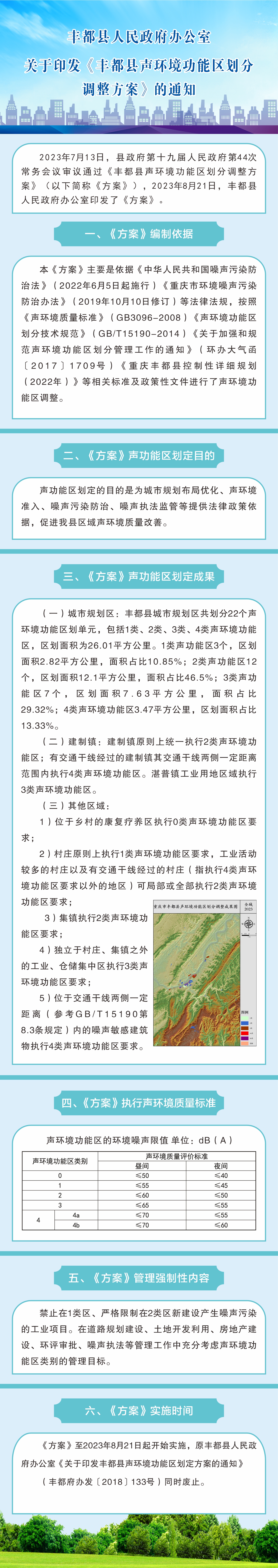 一圖讀懂《九游会首页官网關(guan) 於(yu) 印發豐(feng) 都縣聲環境功能區劃分調整方案的通知》